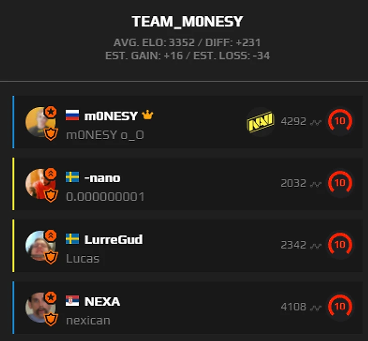 Снайпер NAVI Junior Илья «M0nesy» Осипов и капитан G2 Неманья «Nexa» Исакович сыграли в одной группе в матчмейкинге FACEIT.