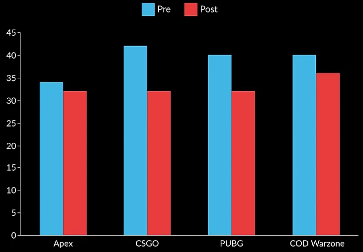 Исследователи из университета Лидса в Великобритании сравнили показатели 32 игроков, сыгравших в Counter-Strike: Global Offensive, Call of Duty: Warzone, PUBG и Apex Legends.