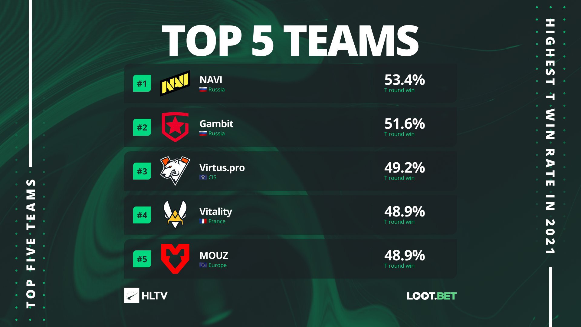 Согласно рейтинг HLTV, к концу 2021 года NAVI стали лучшими по проценту выигранных раундов в атаке.