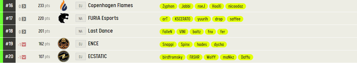 Новая команда Фоллена попала в топ-20 рейтинга ESL. Она не сыграла ни одного матча