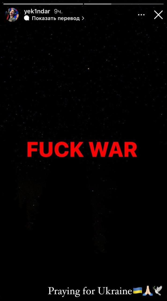 Тимур также выложил инстаграм-историю с надписью: «Нет войне».