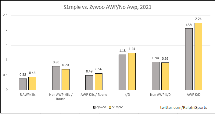 Реддитор под ником Ralphiisports сравнил статистику Александра «S1mple» Костылева и Матье «ZywOo» Эрбо с AWP и без нее в профессиональных матчах CS:GO.