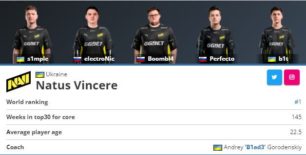 Сайт указал, что теперь клуб представляет Украину. Ранее на HLTV было указано, что NAVI представляют Россию – 3 из 5 игроков состава являются россиянами (Кирилл «Boombl4» Михайлов, Денис «Electronic» Шарипов и Илья «Perfecto» Залуцкий).