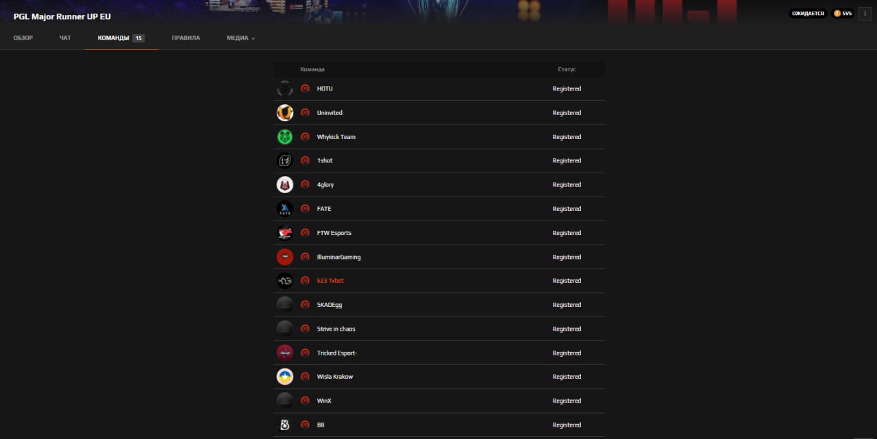 «Этот турнир сделан для того, чтобы определить порядок команд. Если кто-то не сможет поехать на рмр, они по порядку будут звать команды из этого списка», – рассказал Даниелян, приложив скриншот со страницы регистрации турнира на FACEIT.