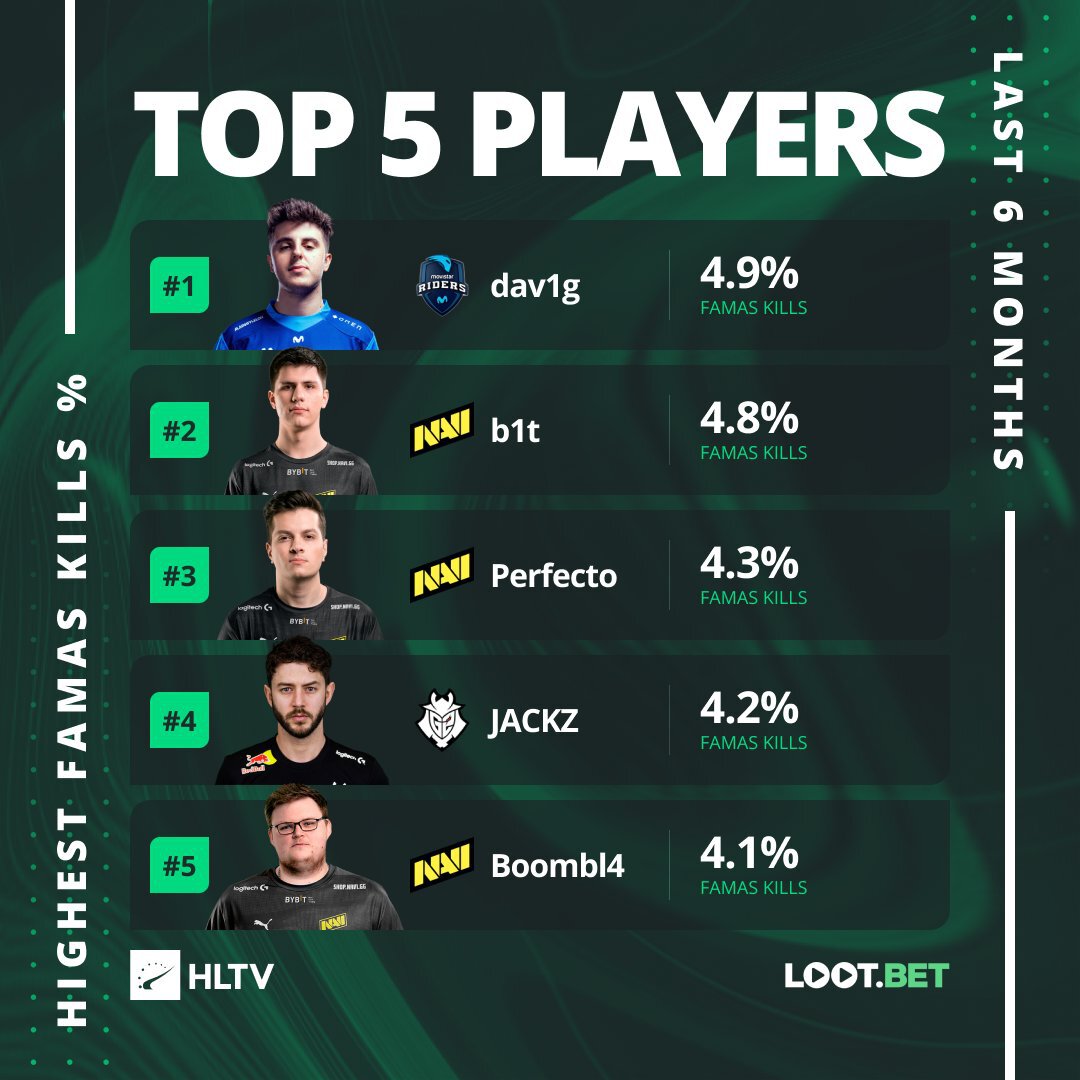 Три игрока NAVI вошли в топ-5 игроков с Фамасом за последние 6 месяцев.