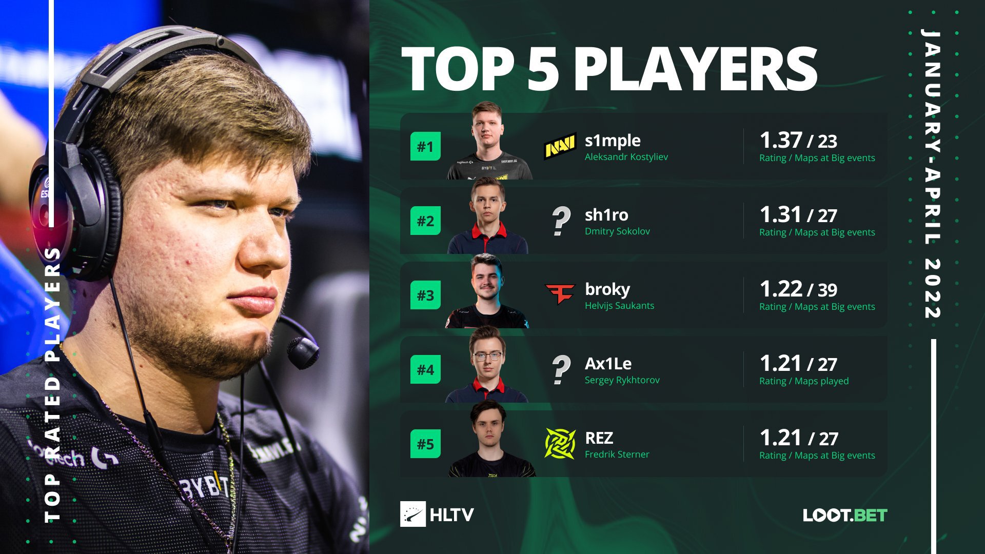 S1mple – лучший игрок рейтинга HLTV в 2022 году (1,37 за 23 карты), Sh1ro и Ax1le – в топ-5