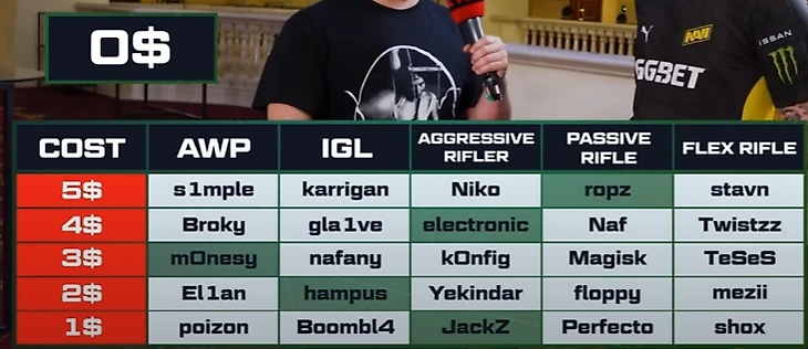 В фэнтези-команду мечты попали Костылева попали он сам, Илья «M0nesy» Осипов, а также 3 игрока NAVI: Кирилл «Boombl4» Михайлов, Илья «Perfecto» Залуцкий и Денис «Electronic» Шарипов.