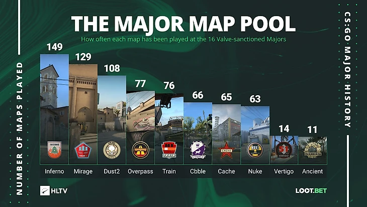 HLTV показал статистику, какая карта была самой популярной на мейджорах.