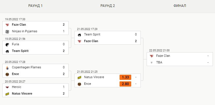 10 мая, 13:00 Spirit 1:0 Eternal Fire