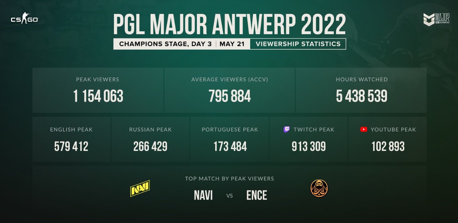 Матч NAVI – Ence собрал 1,15 млн зрителей в полуфинале PGL Major Antwerp.