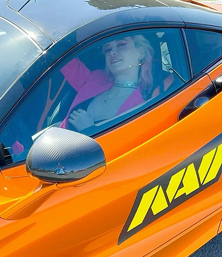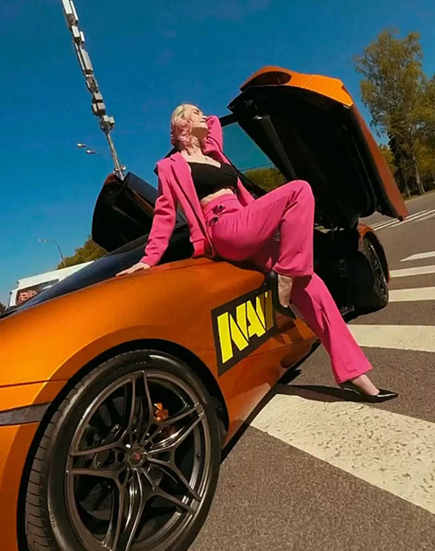 Для фотосессии она использовала спорткар McLaren с логотипом NAVI на дверях и капоте.