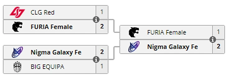 В финале турнира Nigma Galaxy Female обыграла Furia Female. Встреча завершилась со счетом 2:1.