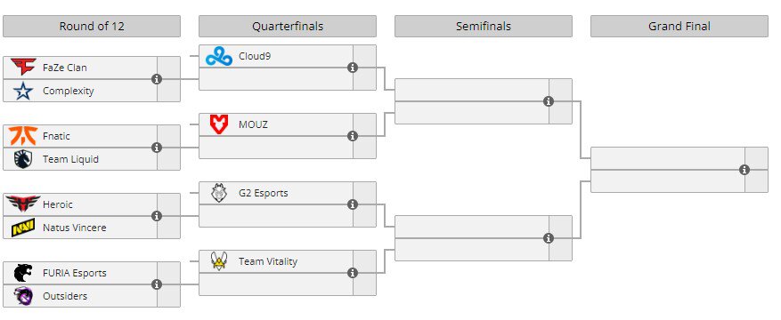 По итогам групповой стадии в четвертьфинал турнира прошли Cloud9, G2, Mouz и Vitality.