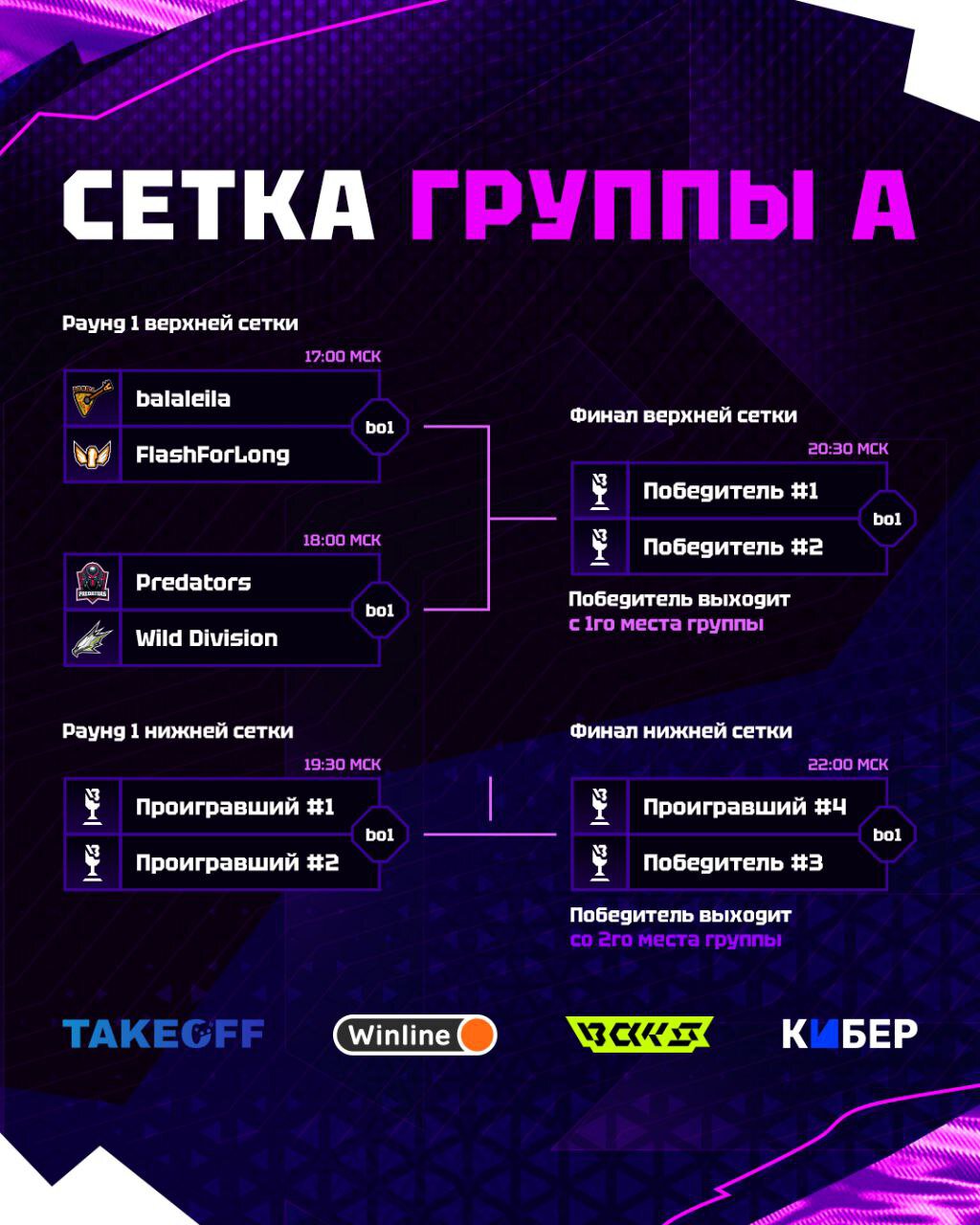 Группа А: Balaleila, FlashForLong, Predators, Wild Division.