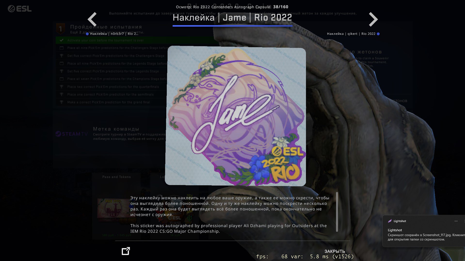 Снайпер Outsiders Джами «Jame» Али показал варианты своего стикера для мейджора по CS:GO.