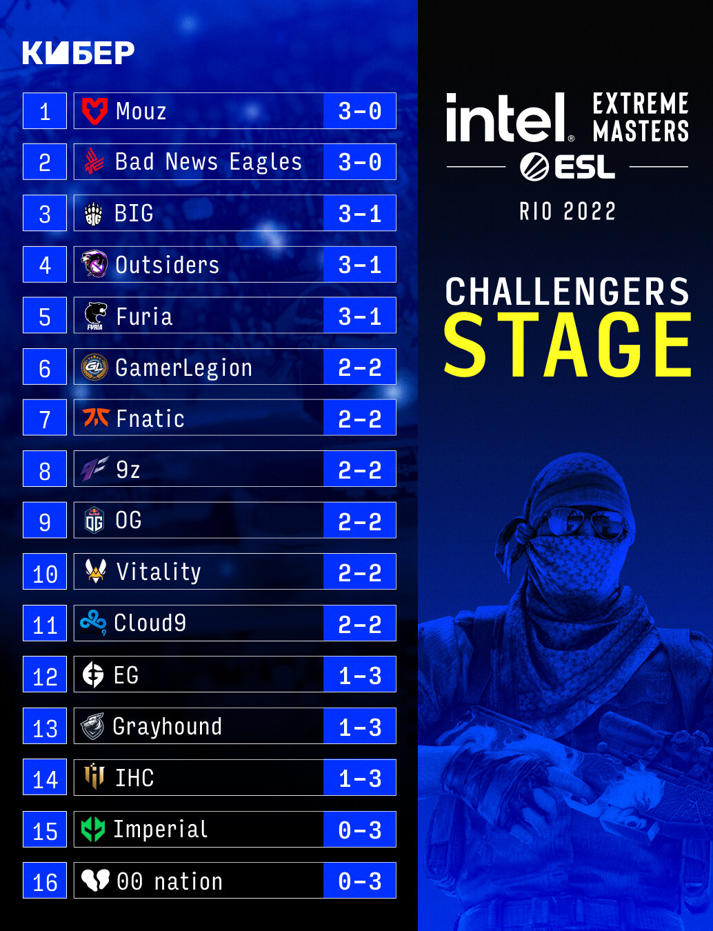 Ранее Cloud9 выбила Imperial c IEM Rio Major 2022. Текущая статистика команды – 2-2, клубу нужна еще 1 победа для выхода в легенды.