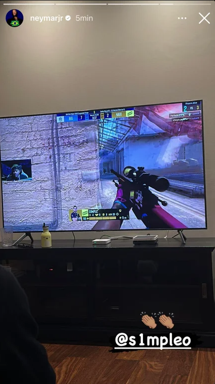 Неймар отметил на фотографии снайпера NAVI украинца Александра «S1mple» Костылева и добавил два эмодзи 👏🏽👏🏽.