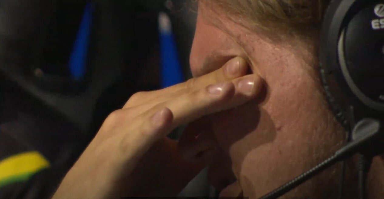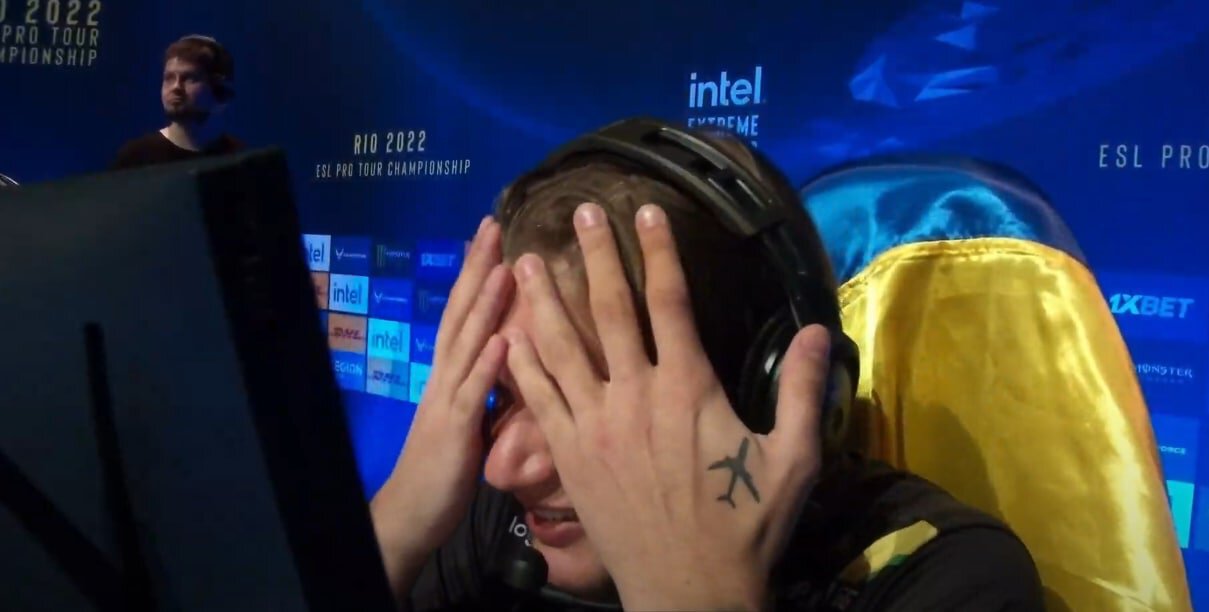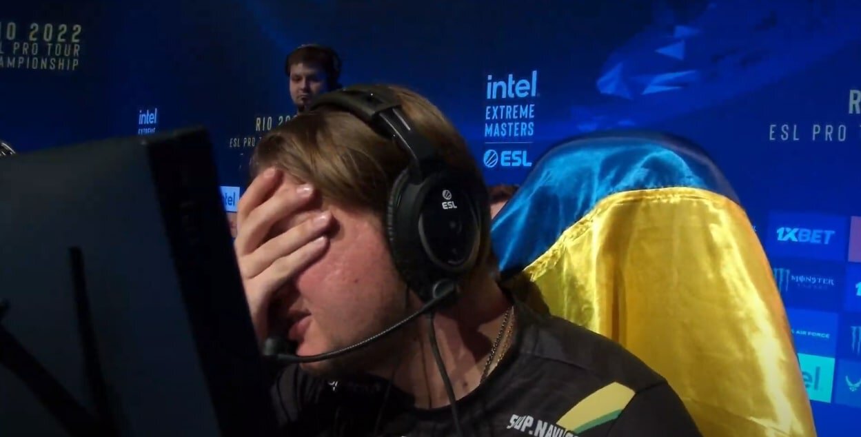 Украинский киберспортсмен отбил фейспалм 6 раз за 2 карты, в одном из моментов S1mple также ударил рукой по монитору.