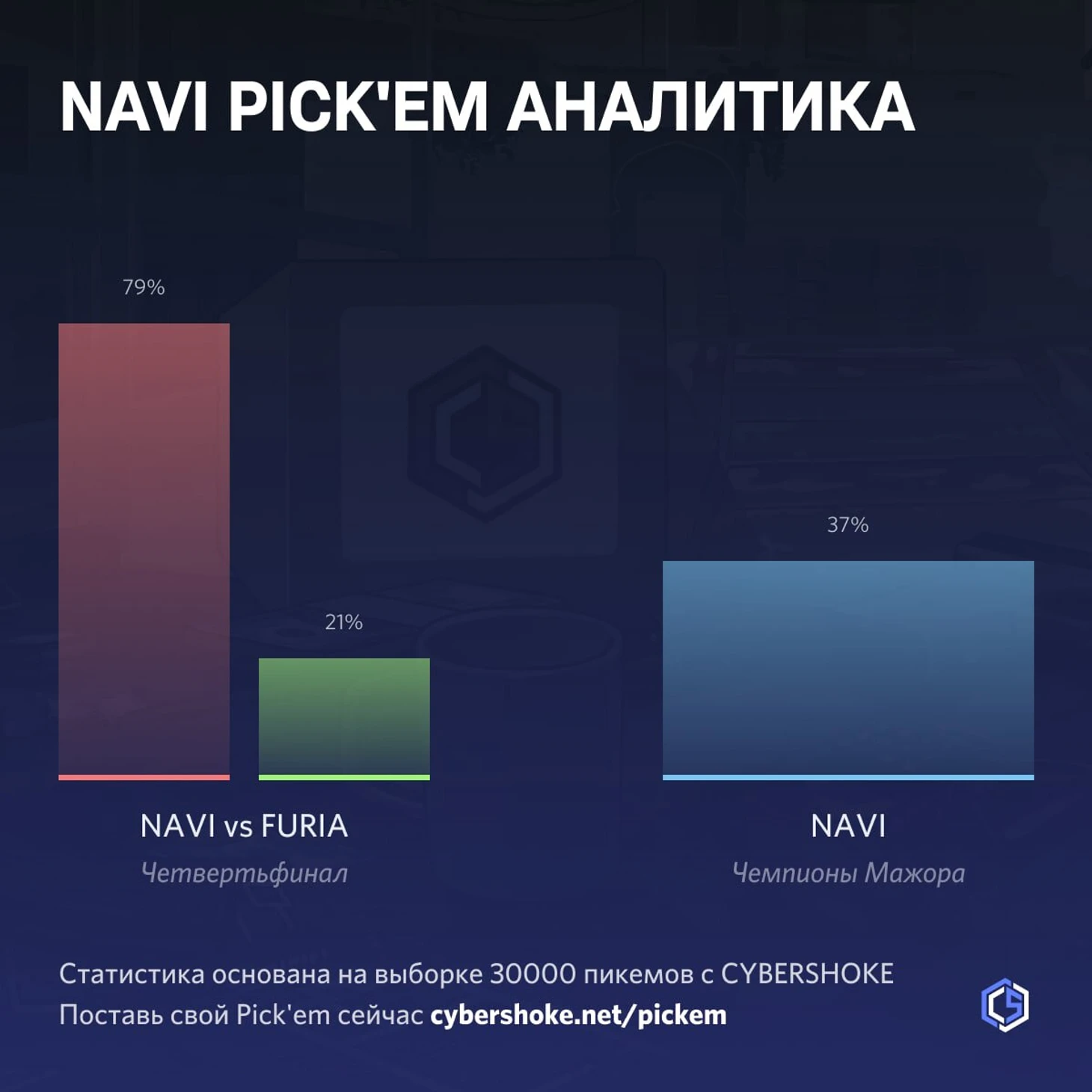 Появилась статистика пикемов на команду NAVI. Данные основаны на выборке 30 000 прогнозов на плей-офф с Cybershoke.