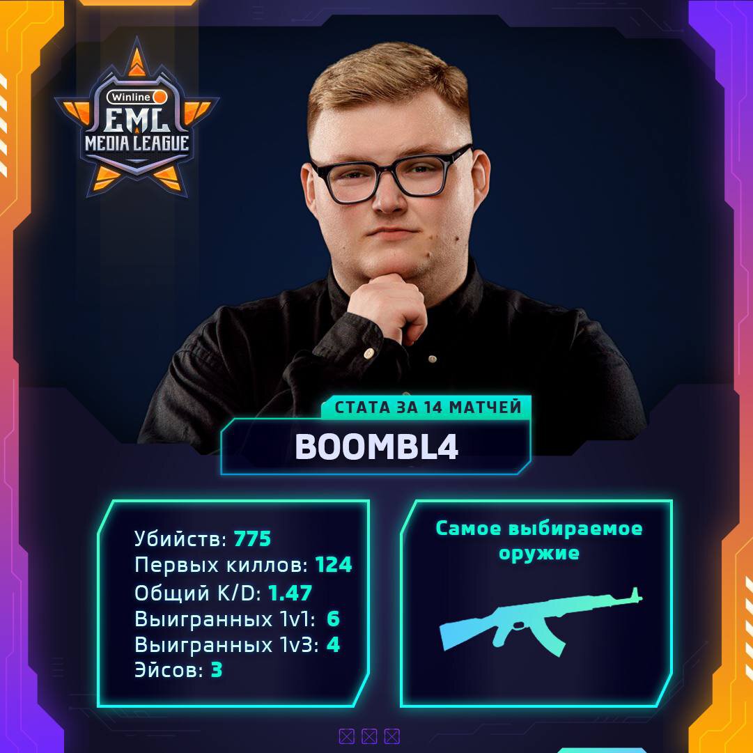 Кирилл «Boombl4» Михайлов отыграл 14 матчей в медиалиге Winline EML.