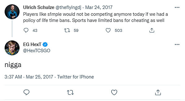 В период с 2015 по 2018 год канадский игрок использовал в твиттере уничижительную лексику в отношении представителей сообщества CS:GO.