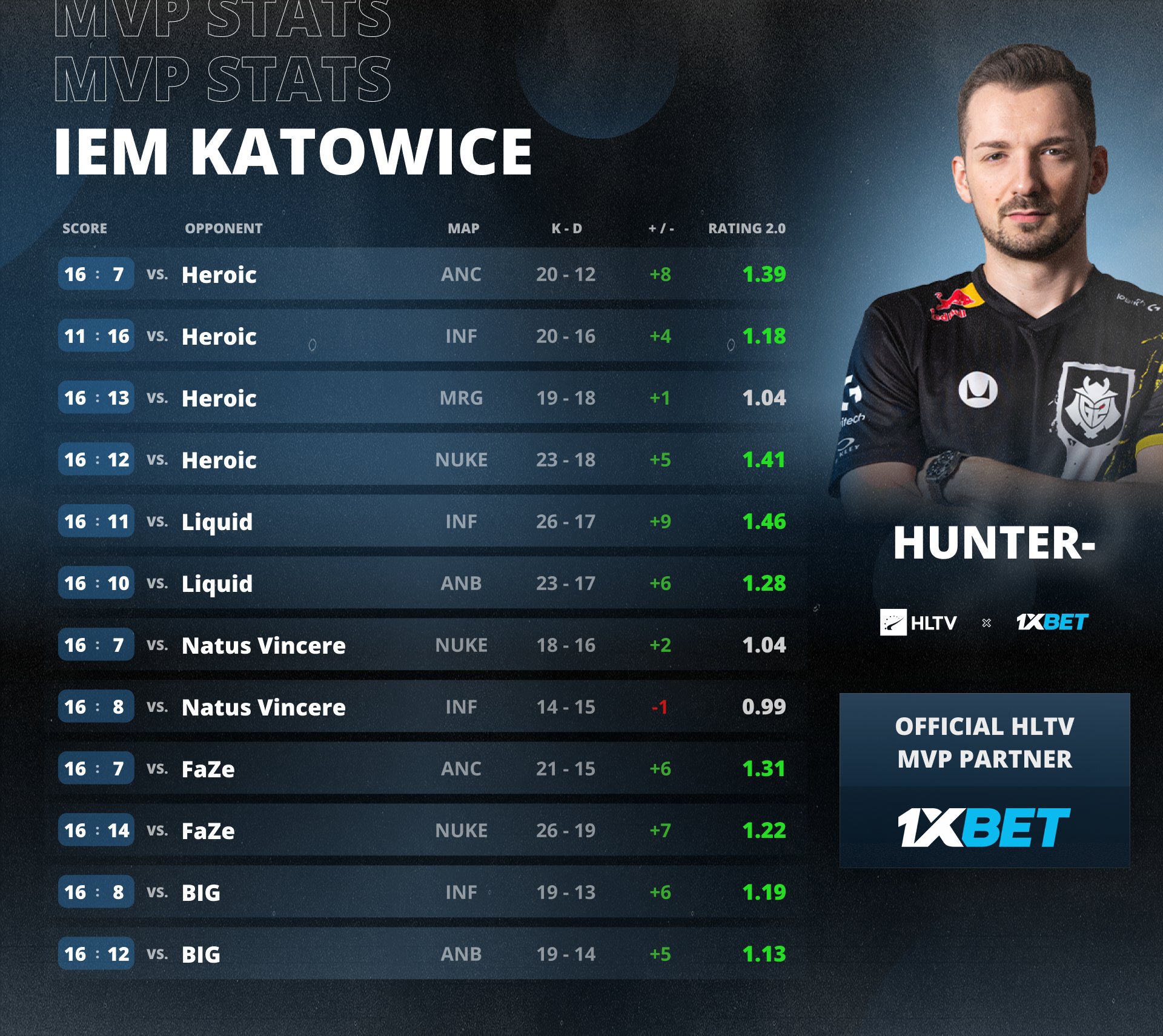 Hunter стал MVP IEM Katowice 2023 по версии HLTV