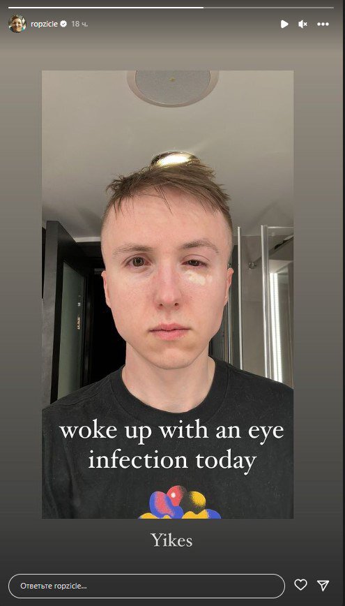 «Проснулся сегодня с инфекцией глаза», – объявил киберспортсмен в сторис.