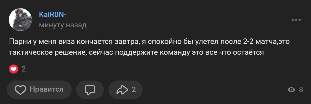 Сейчас поддержите команду, это все что остается», – написал Анашкин в группе в VK. Через несколько минут он удалил сообщение.
