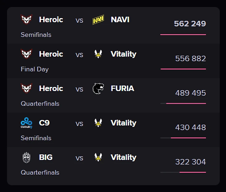 Полуфинал IEM Rio между NAVI и Heroic набрал рекордные 562 тысячи просмотров.