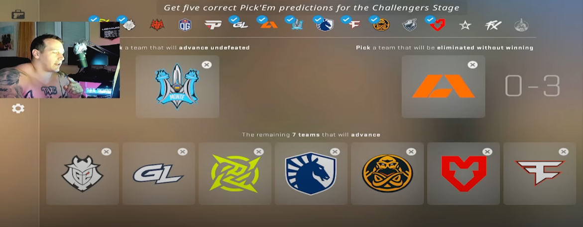 По мнению черногорца, в стадию «Легенд» пройдут G2, GamerLegion, Ninjas in Pyjamas, Liquid, Ence, Mouz и Faze. Со счетом 3-0 стадию «Претендентов» завершит Monte, а 0-3 – Apeks.