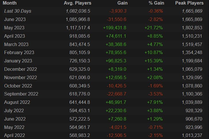 Средний онлайн остановился на 1,08 млн каэсеров, что на 32 тысячи меньше, если сравнивать с прошлым месяцем.