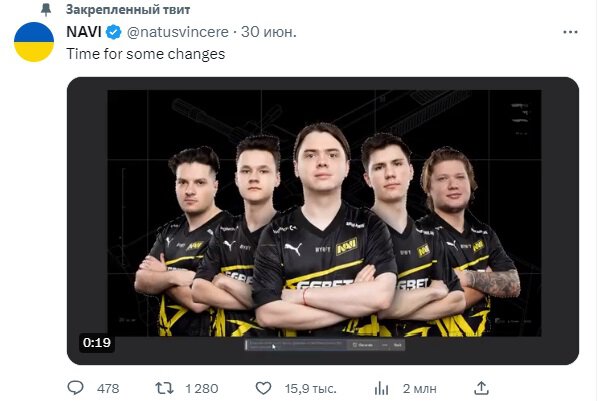 NAVI презентовали обновленный состав 30 июня, а пост заинтересовал всего 2 млн польщователей.