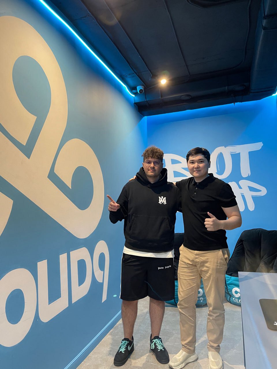 Киберспортсмен сфотографировался на фоне логотипа Cloud9 вместе с Азаматом – братом Абая «Hobbit» Хасенова.