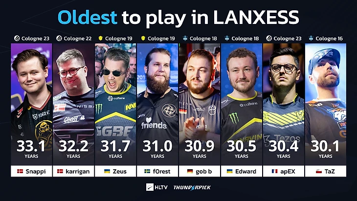 Капитан Ence Snappi занял первое место в рейтинге самых возрастных игроков IEM Cologne.