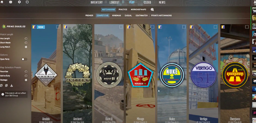 Он показал, как могут выглядеть страница с матчами, выбор карт, меню режима Premier, функция CS360 и контракты обмена.
