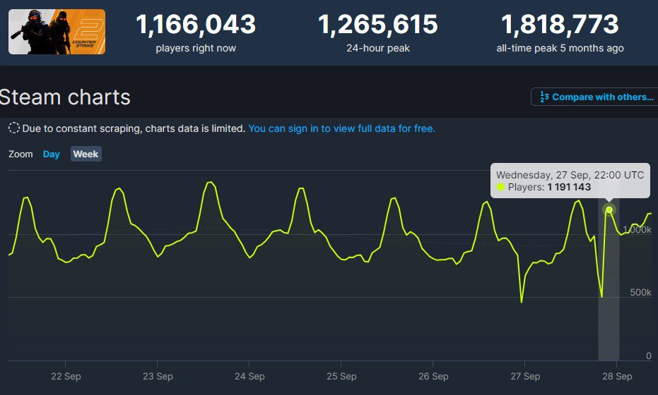 Онлайн Counter-Strike 2 превысил 1,1 млн игроков после релиза