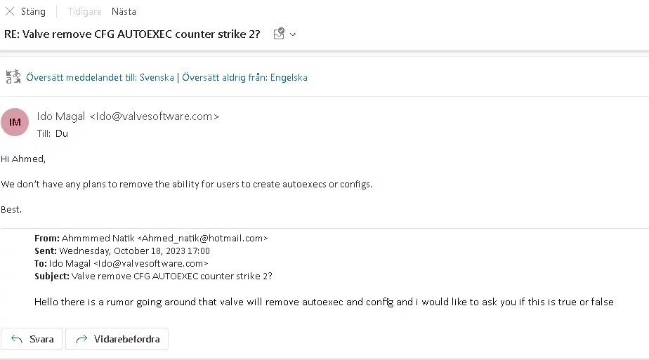 «У нас нет планов по удалению возможности создавать пользователями autoexecs и конфиги», – ответил руководитель разработки CS Идо Магал в письме для пользователя Reddit.