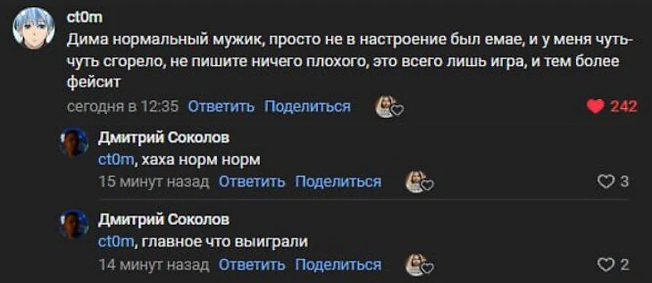 После матча Sh1ro и Ct0m помирились в комментариях ВК-паблика «Тетрадка с фишками».