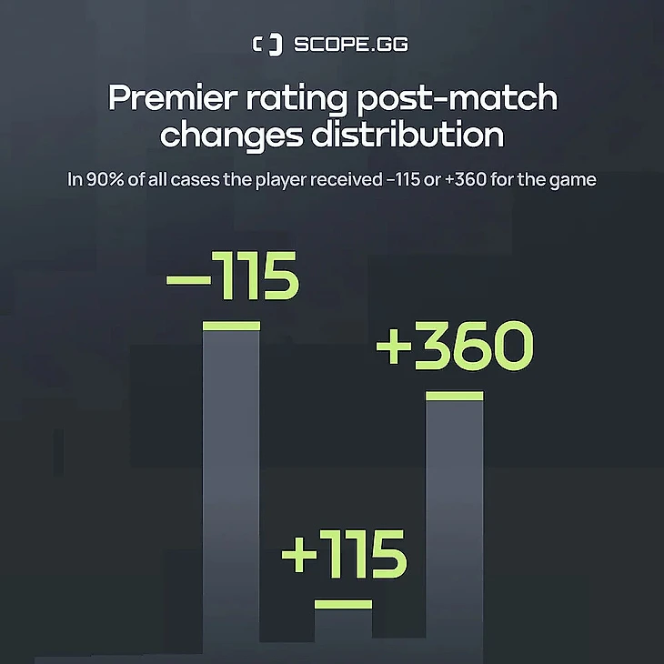 Стало известно, что в среднем игроки в премьер-режиме получают 360 эло за победу, а за поражение теряют 115 эло. Об этом сообщили сотрудники сайта scope.gg.