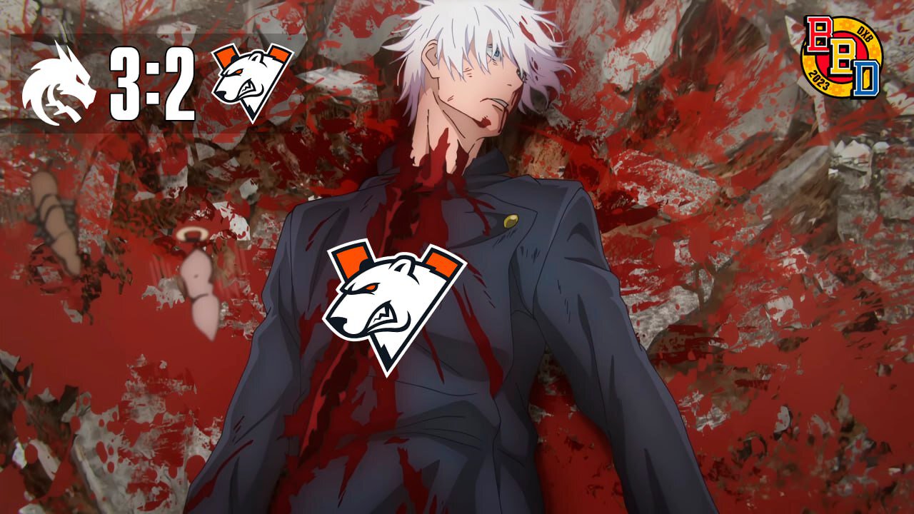 Spirit опубликовала фото Сатору Годжо из аниме «Магическая битва» в крови, добавив на его тело логотип Virtus.pro.