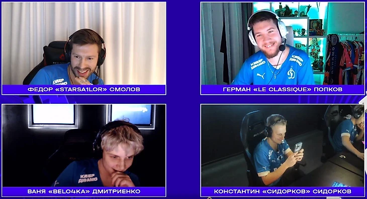 На твич-канале «КиберДинамо» прошла трансляция первой тренировки команды в CS 2. В состав команды вошел нападающий «Динамо» Федор Смолов, президент «Амкала» Герман Эль Класико, музыкант Ваня Дмитриенко и диджей Константин Сидорков.