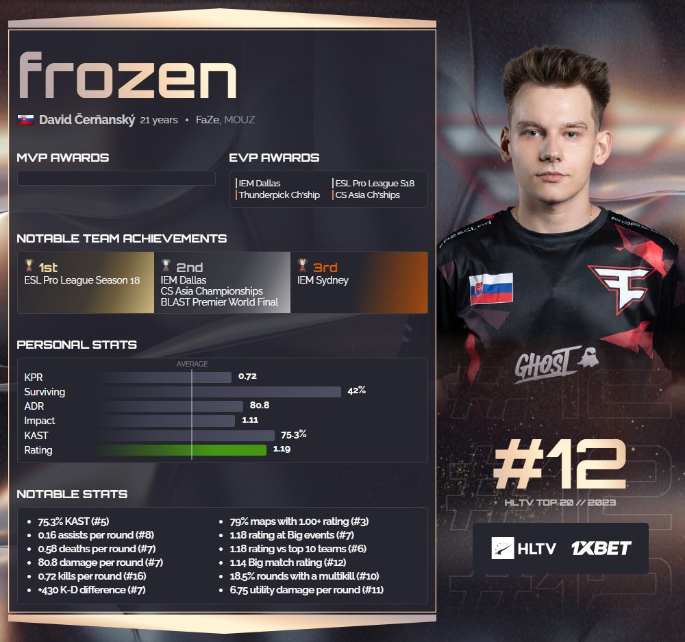 Frozen занял 12-е место в топе игроков 2023 года по версии HLTV