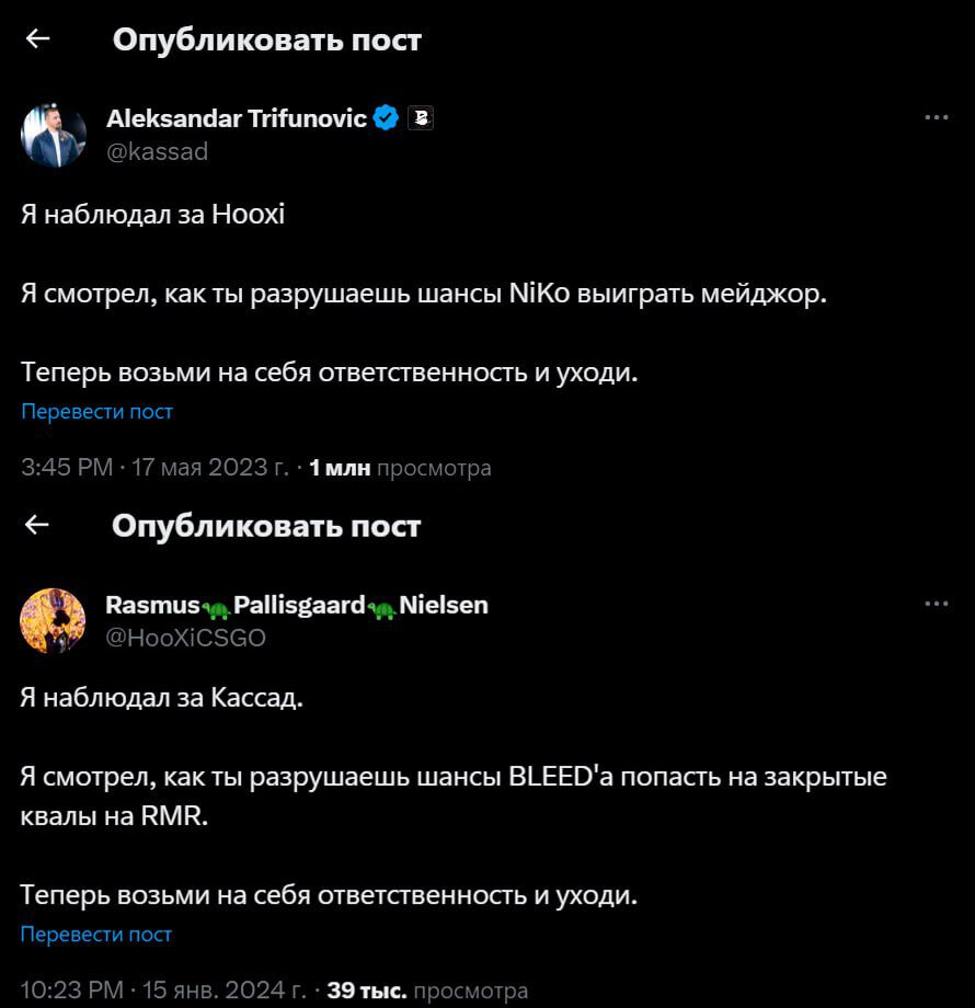 HooXi повторил сообщение Александра «kassad» Трифуновича, который в мае написал его в адрес Расмуса.