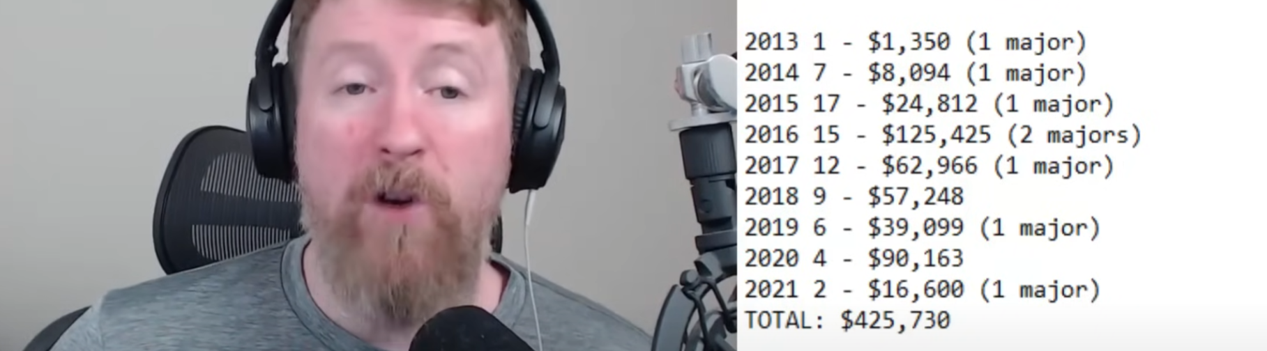 Наибольшую сумму британец заработал в 2016 году – 125 тысяч долларов. Он отработал на 15 турнирах, включая два мейджора.