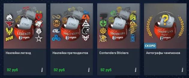 Valve выпустила три набора стикеров: «Наклейки легенд», «Наклейки претендентов» и Contenders Stickers.