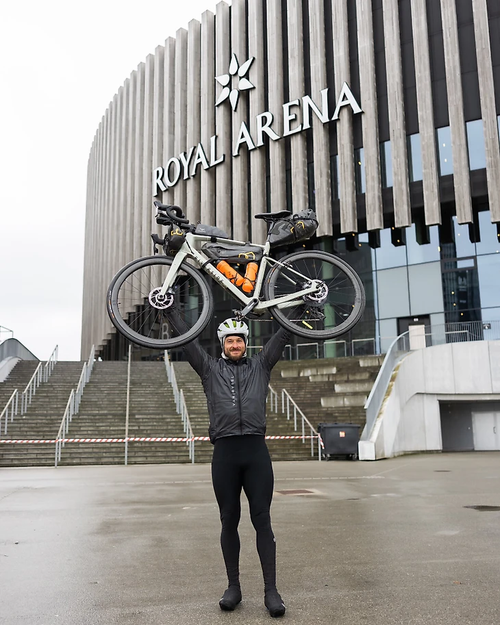 PashaBiceps добрался до Royal Arena в Копенгагене. Он проехал на велосипеде около тысячи километров за неделю