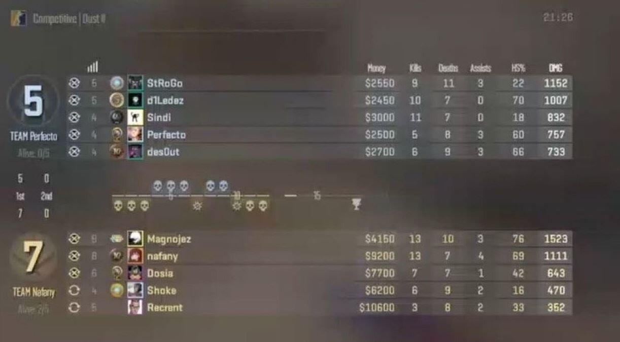 Lobanjica прикрепил скриншот, на котором Илья «Perfecto» Залуцкий имеет 5 фрагов к 13-му раунду, в то время как его девушка, Татьяна «Sindi» Грачева, 11.