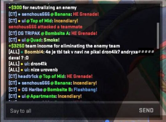 Согласно скриншоту, Boombl4 написал в общий чат: «Че же ты так в NAVI не пикал, Дрончик? Андрюха [B1ad3] ##### [люлей] давал?»