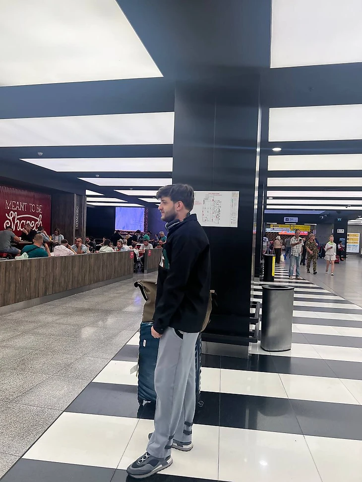 Фотографией поделился автор ютуб-канала «Колесница киберспорта»: «Вы только посмотрите, кто стоит в Шереметьево, да еще и с чемоданом. Видимо, ждет чего».