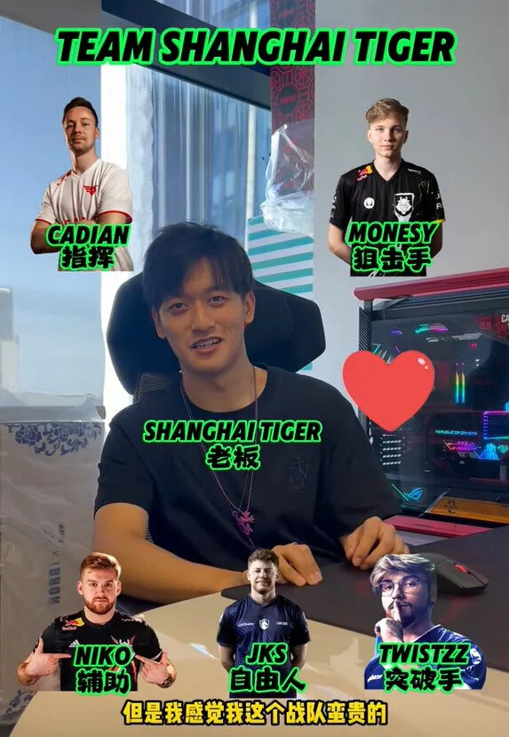 В команду мечты китайского гонщика попал 19-летний россиянин Илья «M0nesy» Осипов, его тиммейт по G2 Никола «Niko» Ковач, рифлеры Джастин «Jks» Севейдж и Рассел «Twistzz» ван Далкен, а также датский капитан Каспер «Cadian» Меллер.